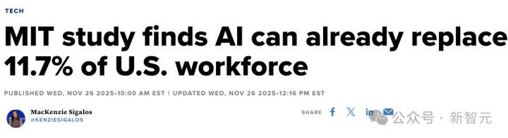 而来自MIT的研究发现,AI已经能取代11.7%的美国劳动力。