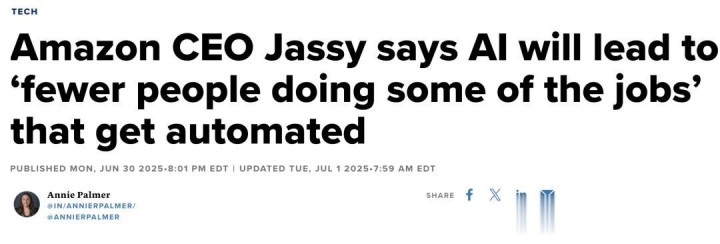 亚马逊CEO声称裁员并非AI驱动,同时又预测AI将淘汰工作岗位。
