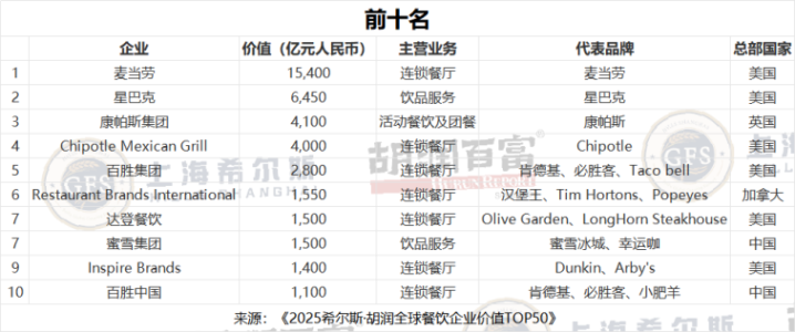 近日,胡润研究院发布《2025希尔斯·胡润全球餐饮企业价值TOP50》,这份全球首份餐饮企业价值榜单揭示了全球餐饮行业的最新格局。麦当劳以1.54万亿元人民币的价值稳居榜首,价值超过其后三大企业的总和,约占全榜单总价值的近三成网上配资网站,彰显了其在快餐领域的绝对领导地位。