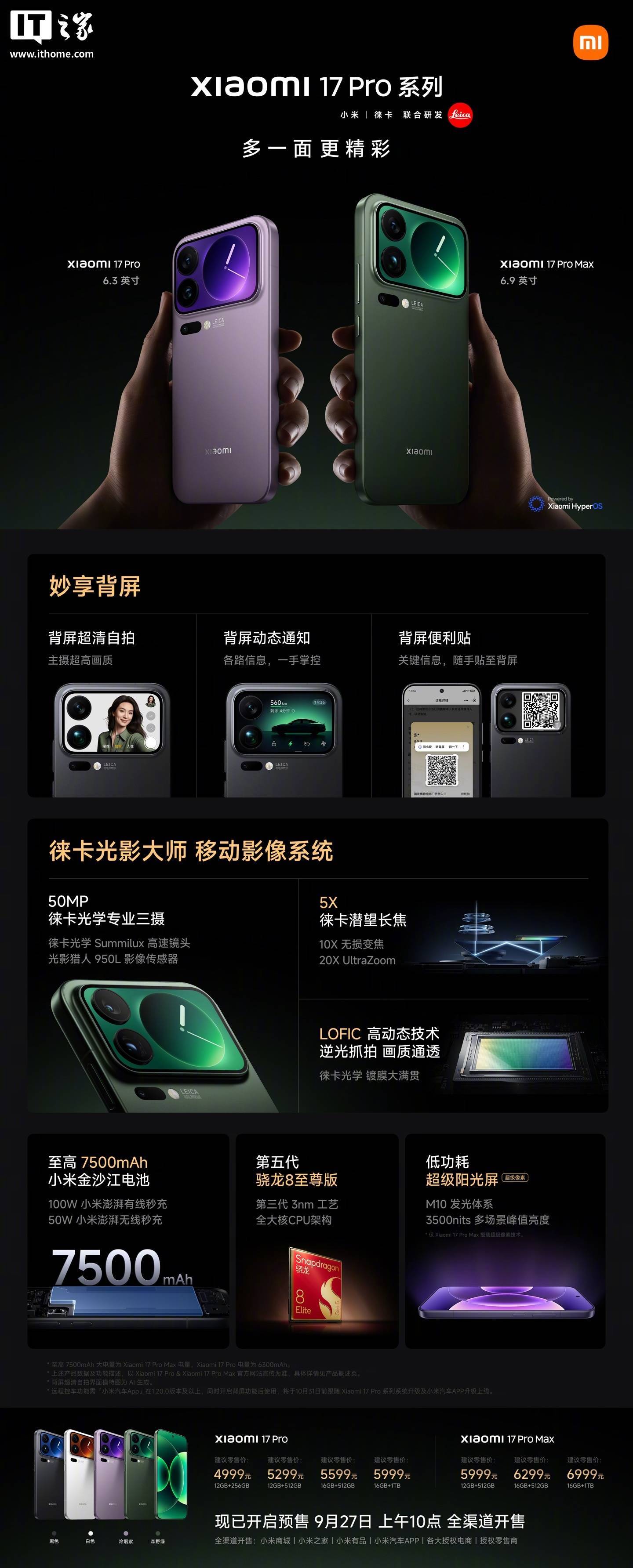 9 月 27 日上午 10 点,小米 17 全系开售 5 分钟,刷新 2025 年国产手机全价位段新机系列,首销全天销量、销额纪录。其中,小米 17ProMax 单款机型也打破了今年国产手机全价位段首销全天销量、销售额纪录,在小米 17 系列中销量占比超过 50%。